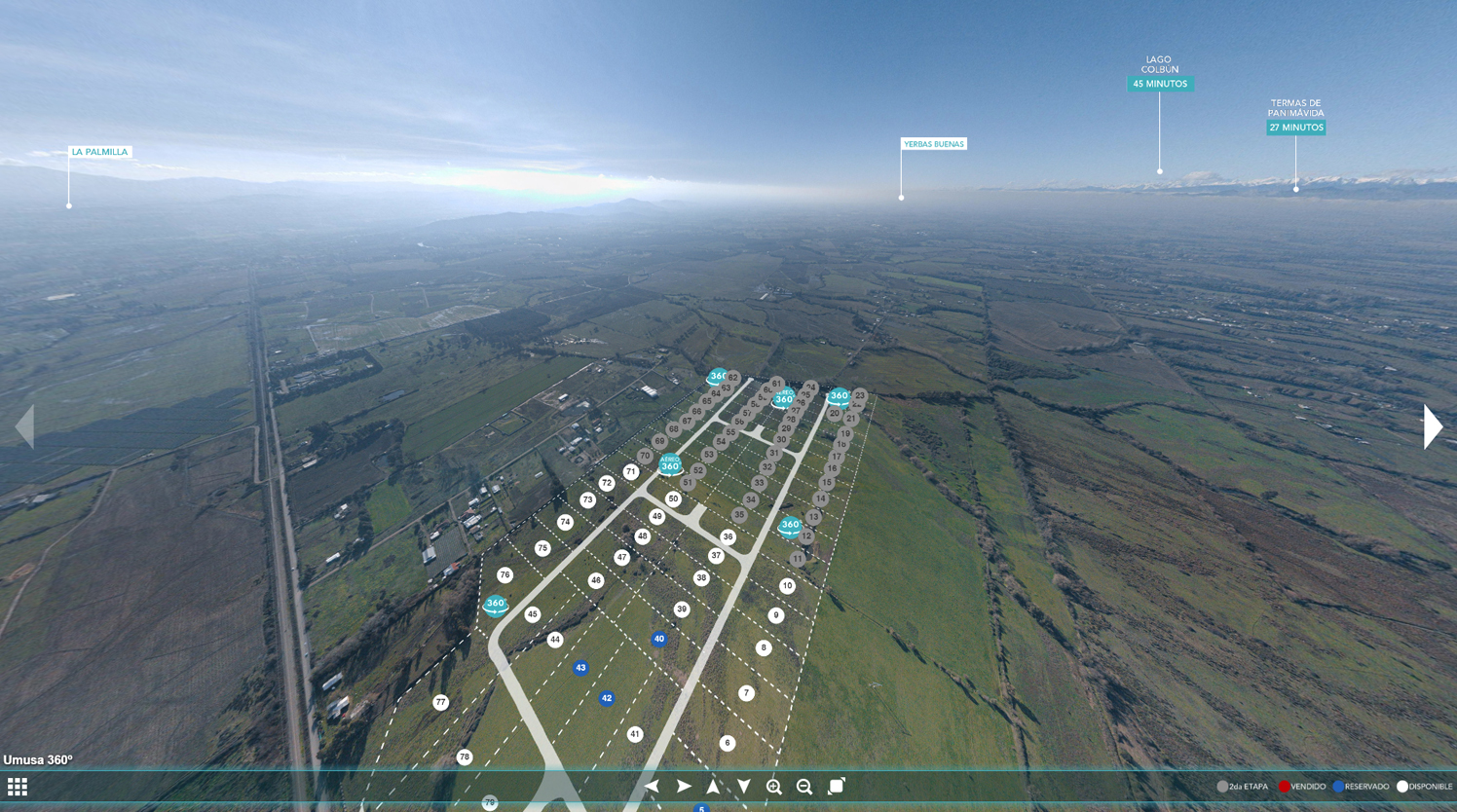 Website created in collaboration with UMUSA, a Chilean company. This project included multiple 360° panoramic images as well as an administrator panel for maintaining the status of the lots.